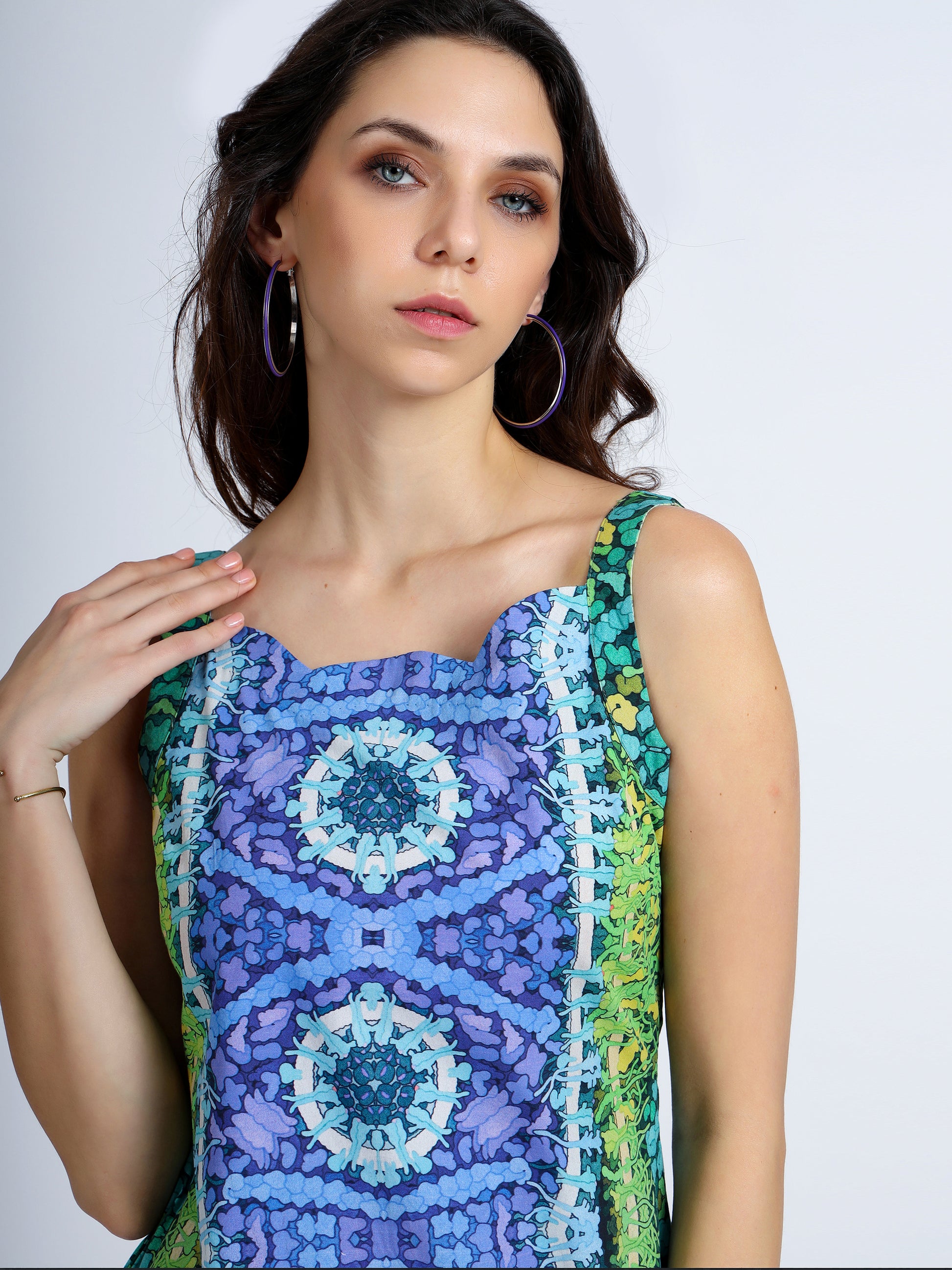 Color:- Multicolor with prominent shades of Blue, Green, Purple, and Yellow.