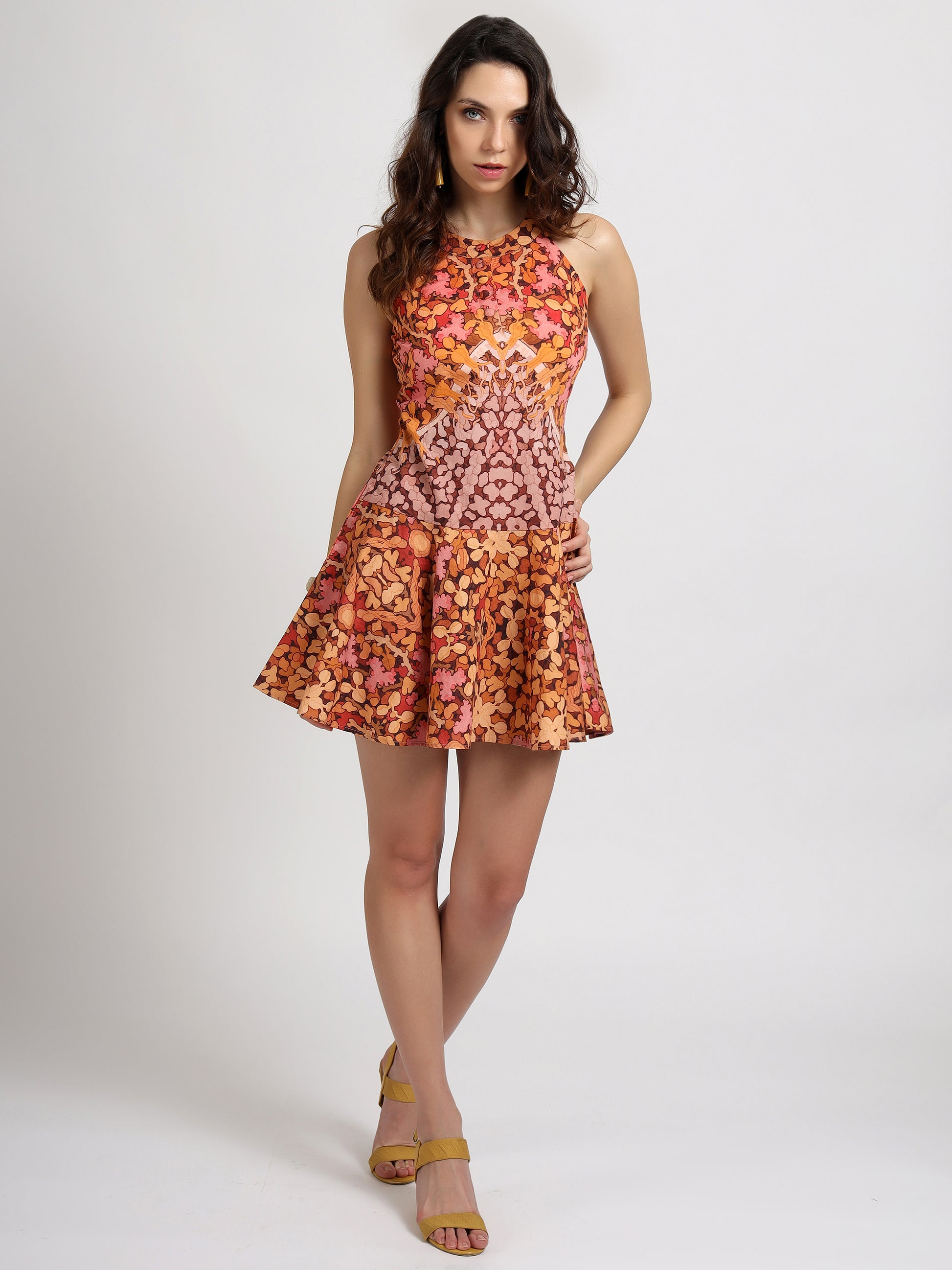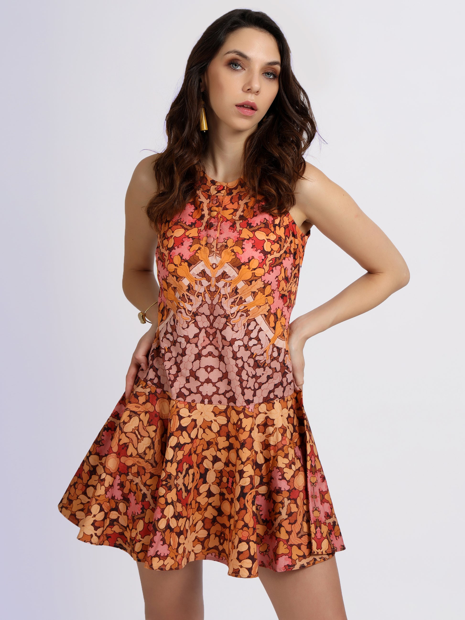 A halter-neck fit-and-flare dress crafted from breathable cotton poplin, designed for movement and charm with a hidden pocket.