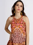 Color:-Multicolor with prominent shades of burnt orange, rust, coral pink & soft brown.