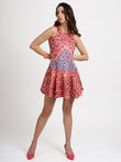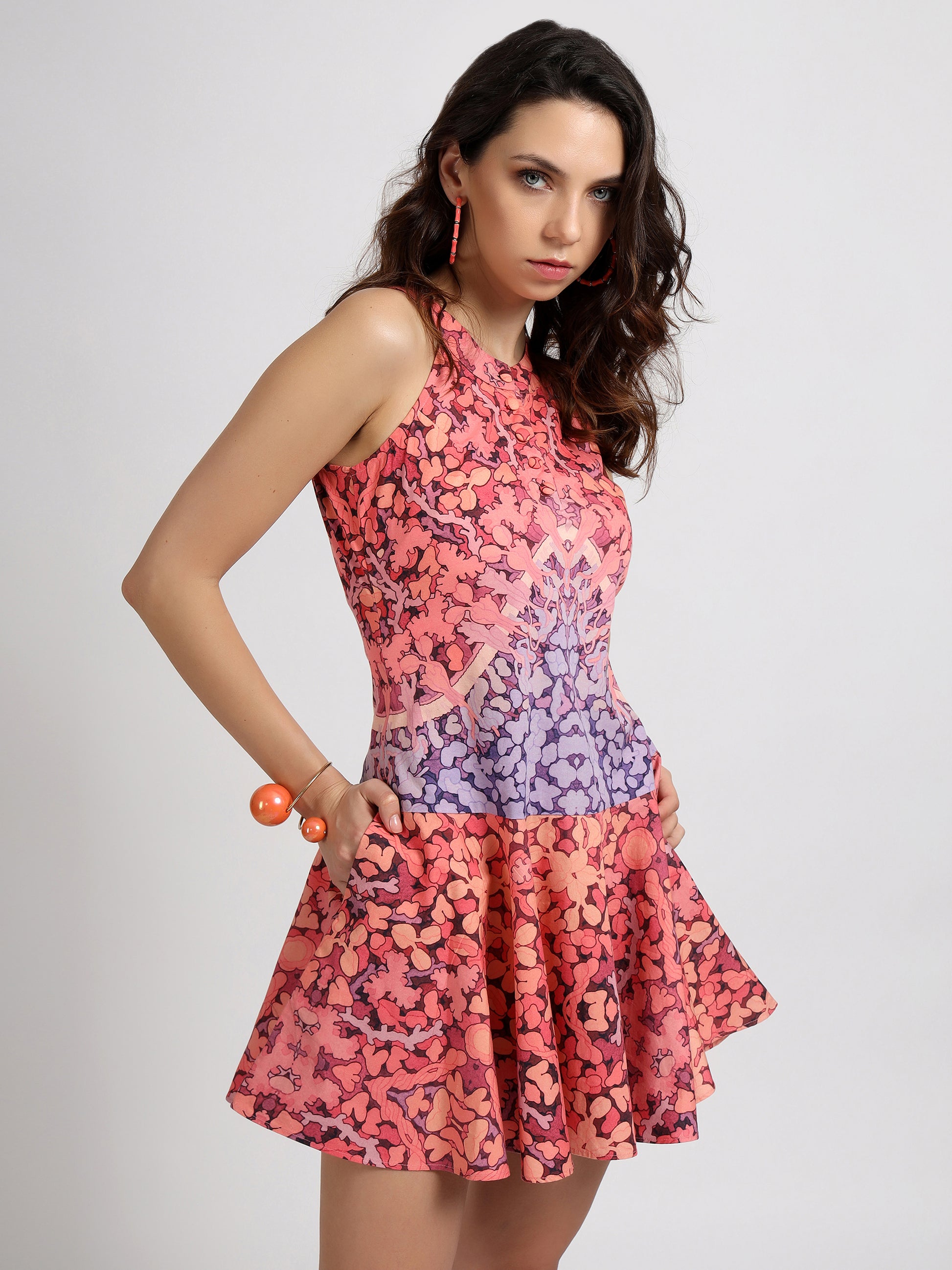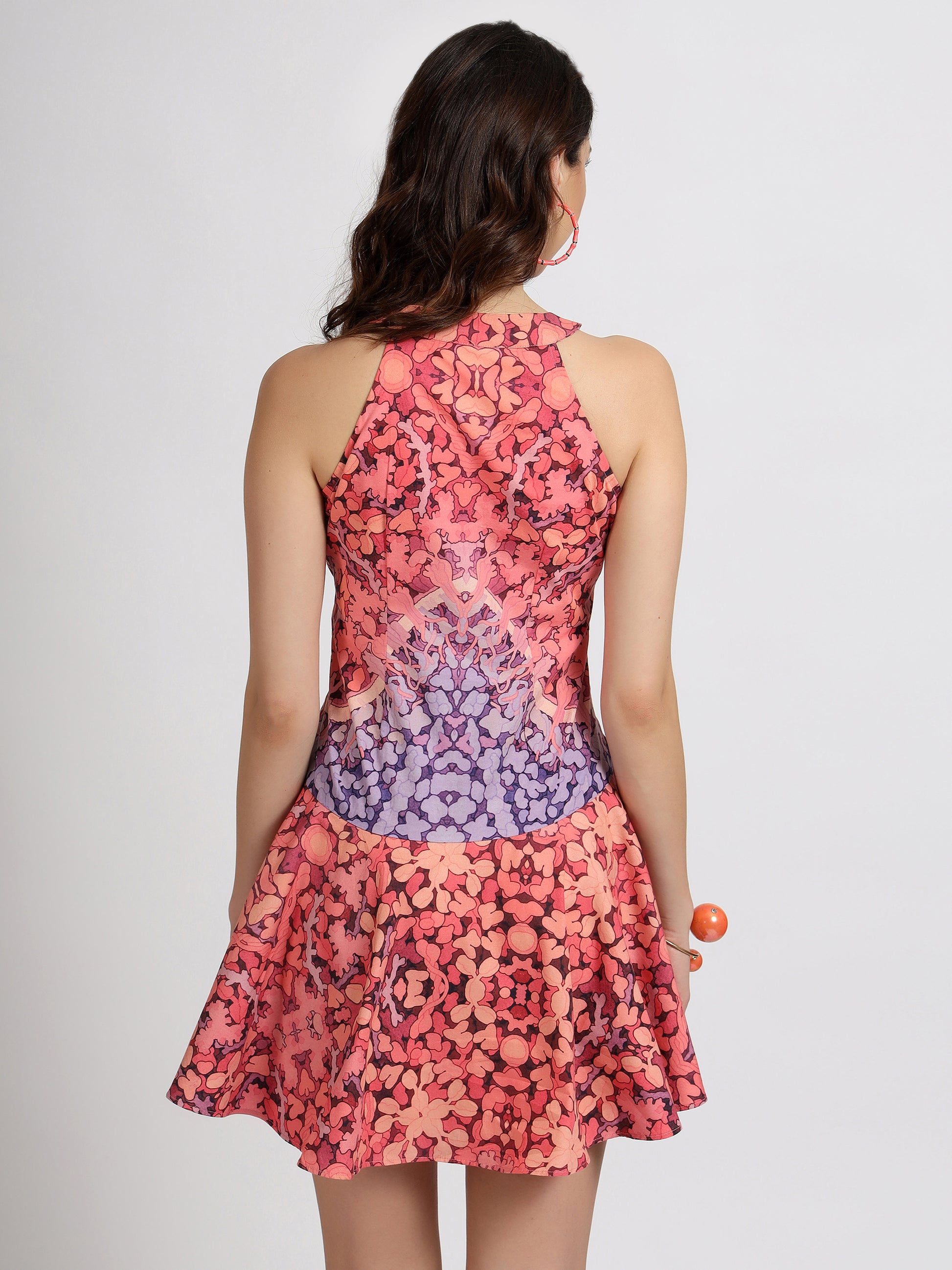 A halter neck fit and flare dress crafted from breathable cotton poplin, designed for movement and charm, complete with a hidden pocket.