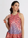 Color :- Multicolor with prominent shades of Coral Pink, Lavender Purple, Peach Orange.