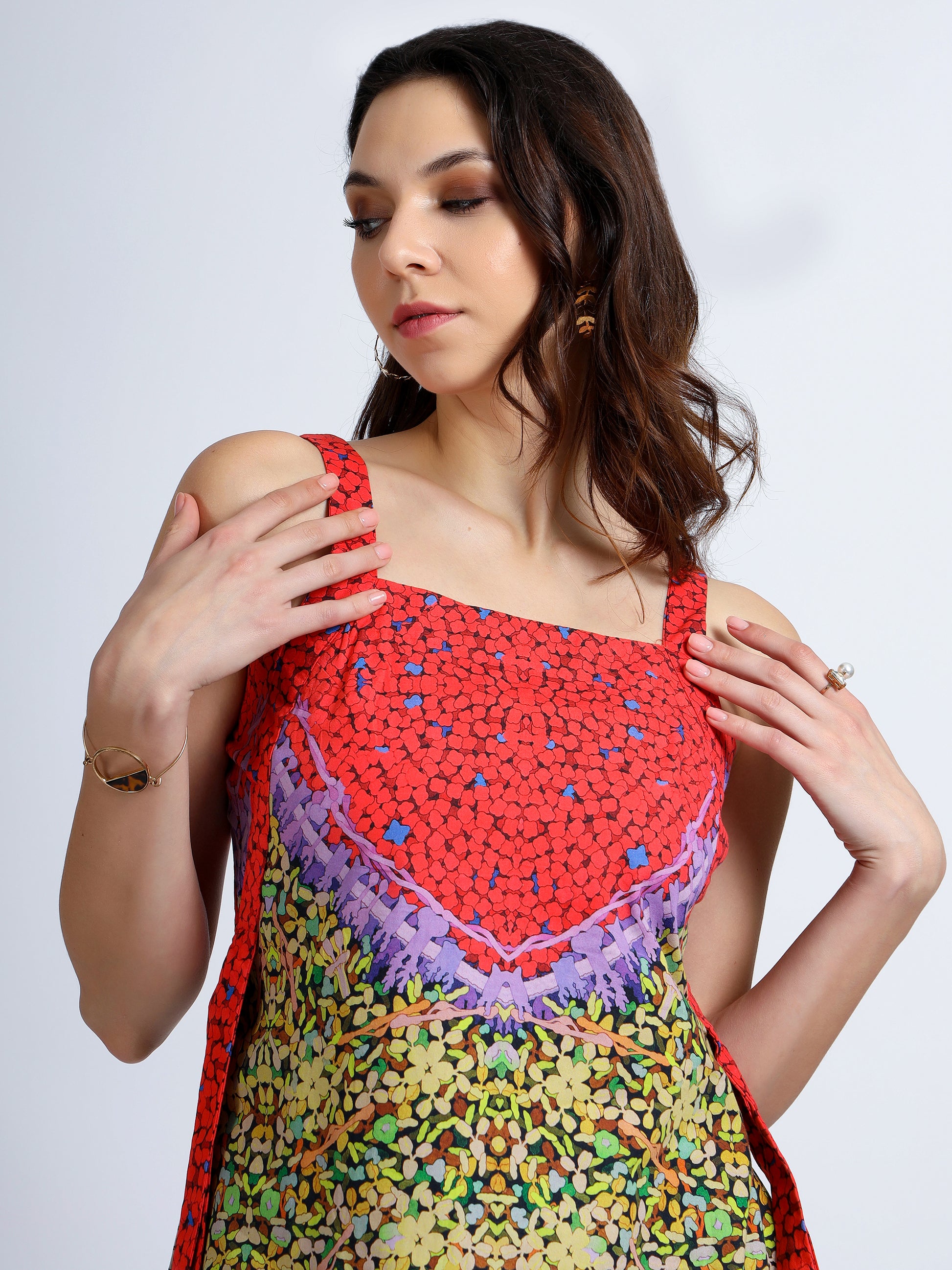 Color :- Multicolor with prominent shades of Red, Green, Purple, and Yellow.