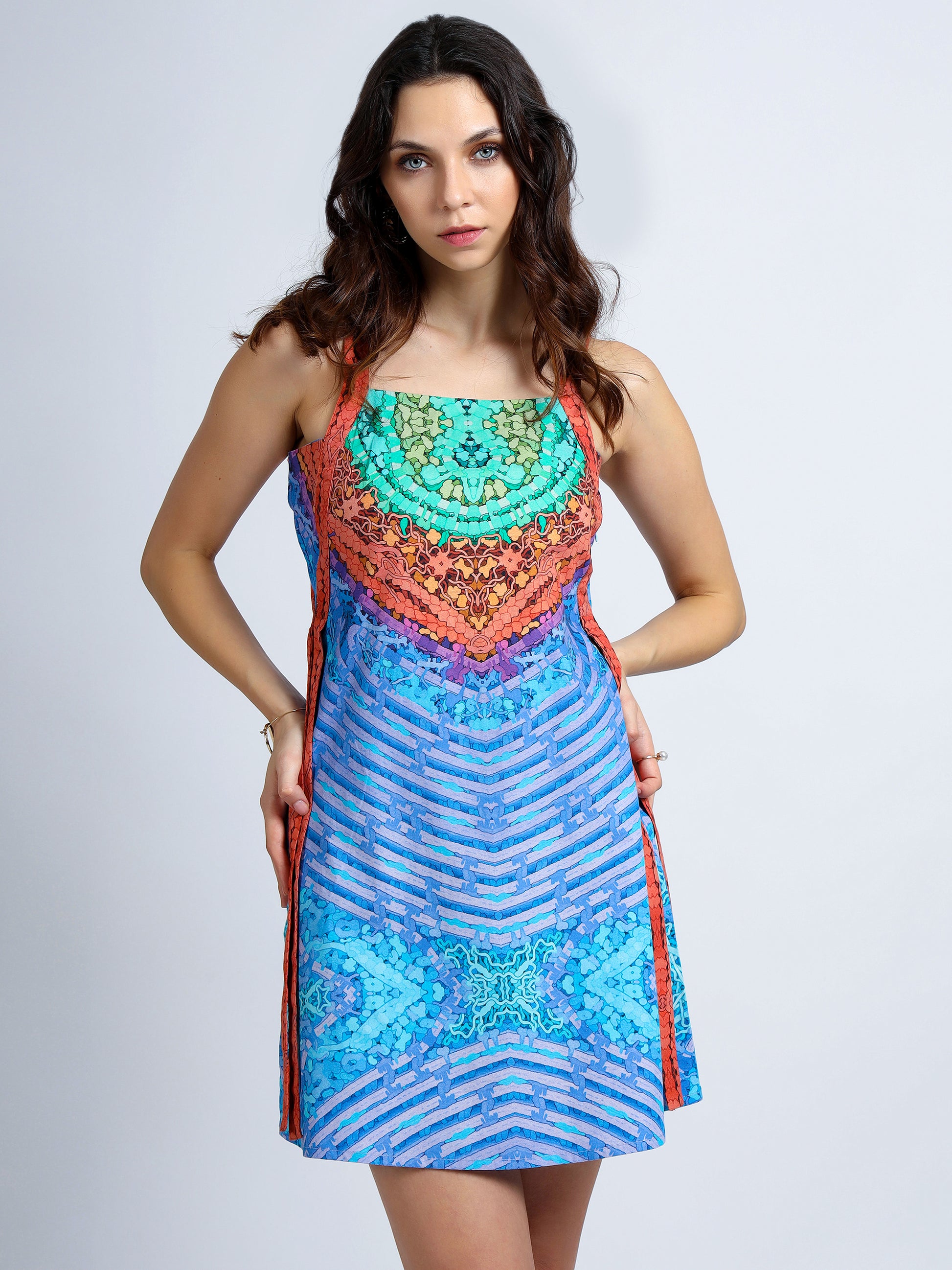 This open-strap cotton poplin dress is all about easy comfort and flow. Its bold, layered print takes cues from how our body’s nerves work — just like wires, wrapped to keep signals moving smoothly.
