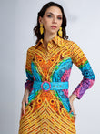 The vibrant print reflects the beauty of everyday systems like a central wire, tightly wrapped with layers of thread for support and energy. Organized, protected, and full of life where fashion meets function in a bold, artistic way.